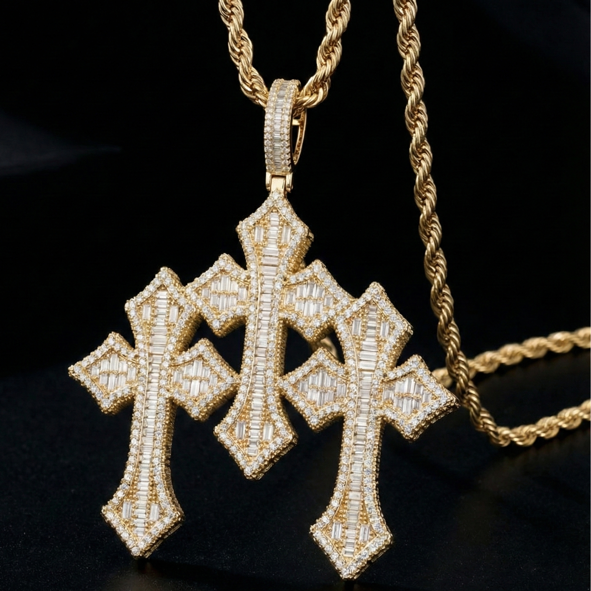 Heavy Triple Cross Pendant - Gold【無料チェーン付属】